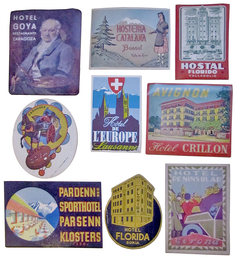 Hoy en dia no se ven en maletas, pero si una versión similar en los adhesivos que llevan varias autocaravanas, coches o furgonetas de su periplos por Europa o campings donde han estado…